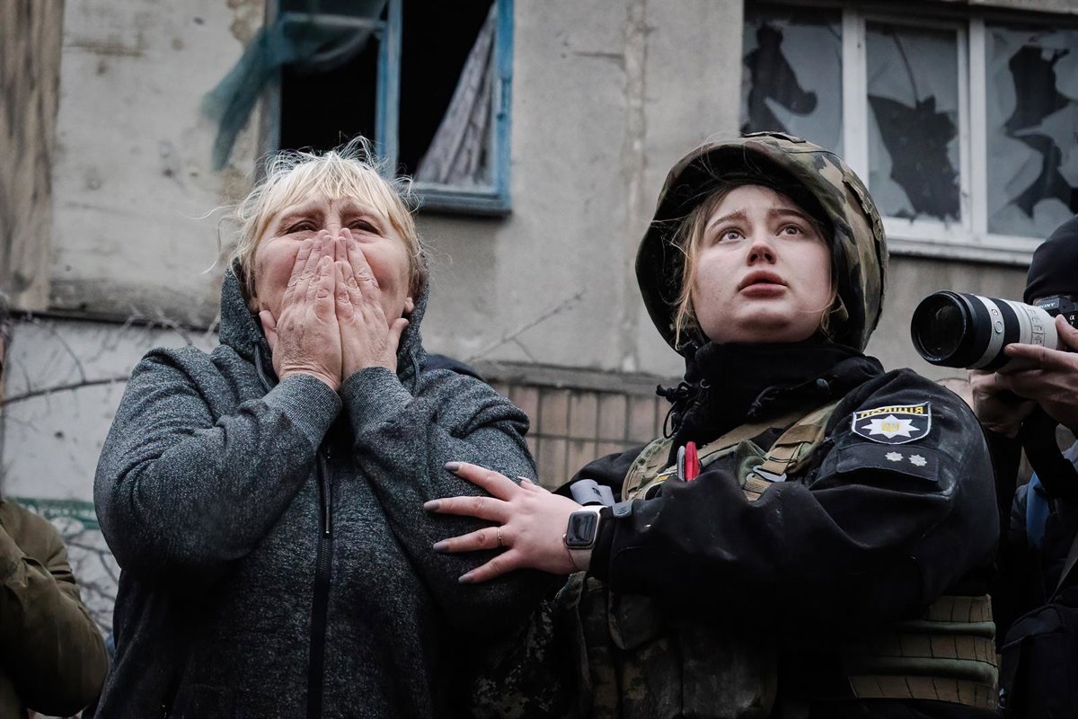 Archivo - Una mujer ucraniana junto a a una agente de la Policía se lamenta tras un ataque ruso en Sloviansk, en la provincia de Donetsk. - Europa Press/Contacto/Ashley Chan - Archivo