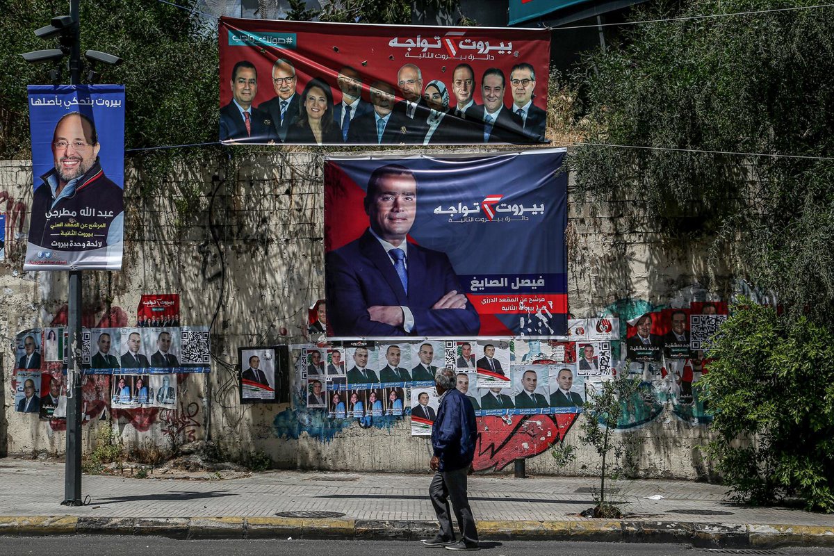 Una persona camina por las calles de la capital de Líbano, Beirut, ante diversos carteles políticos antes de las elecciones parlamentarias - Marwan Naamani/dpa