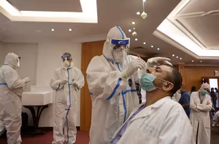Un trabajdor sanitario realiza una prueba de coronavirus en Líbano - Marwan Bou Haidar/APA Images via / DPA - Archivo