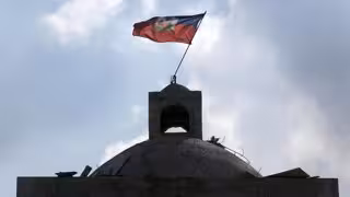Archivo - Bandera de Haití en una iglesia de Puerto Príncipe.