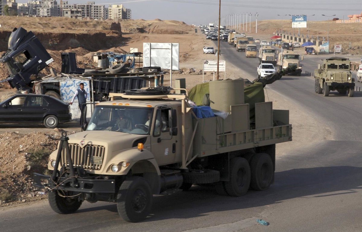 Un grupo separado de peshmerga está viajando por tierra hacia la frontera entre Turquía y Siria con armamento pesado. Una cadena de televisión kurda ha mostrado imágenes del convoy con armamento pesado de camino hacia Kobani.