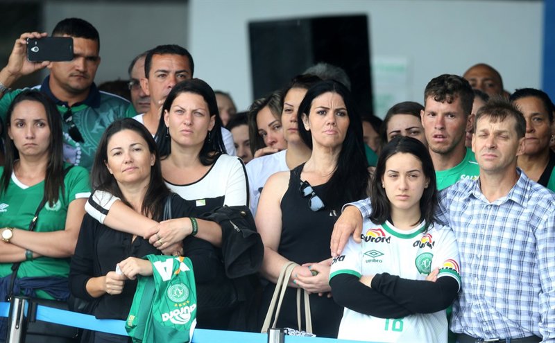 Los restos mortales de los fallecidos en el siniestro del avión donde viajaban los jugadores del club de fútbol Chapecoense han llegado ya al aeropuerto de Enoss Bertasso, en Chapecó, donde han sido recibidos por medio centenar de familiares.