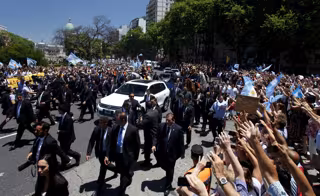 Pero Macri se ha resarcido protagonizando un paseo por las calles bonaerenses, plagadas de argentinos que blandían la bandera nacional al paso del coche con techo abatible desde el que el nuevo jefe de Estado ha saludado sonriente.