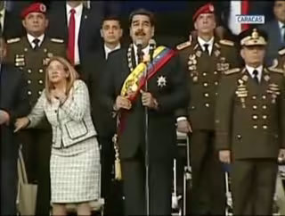 Momento en el que drones explosivos revientan un acto militar de Nicolás Maduro - REUTERS / HANDOUT