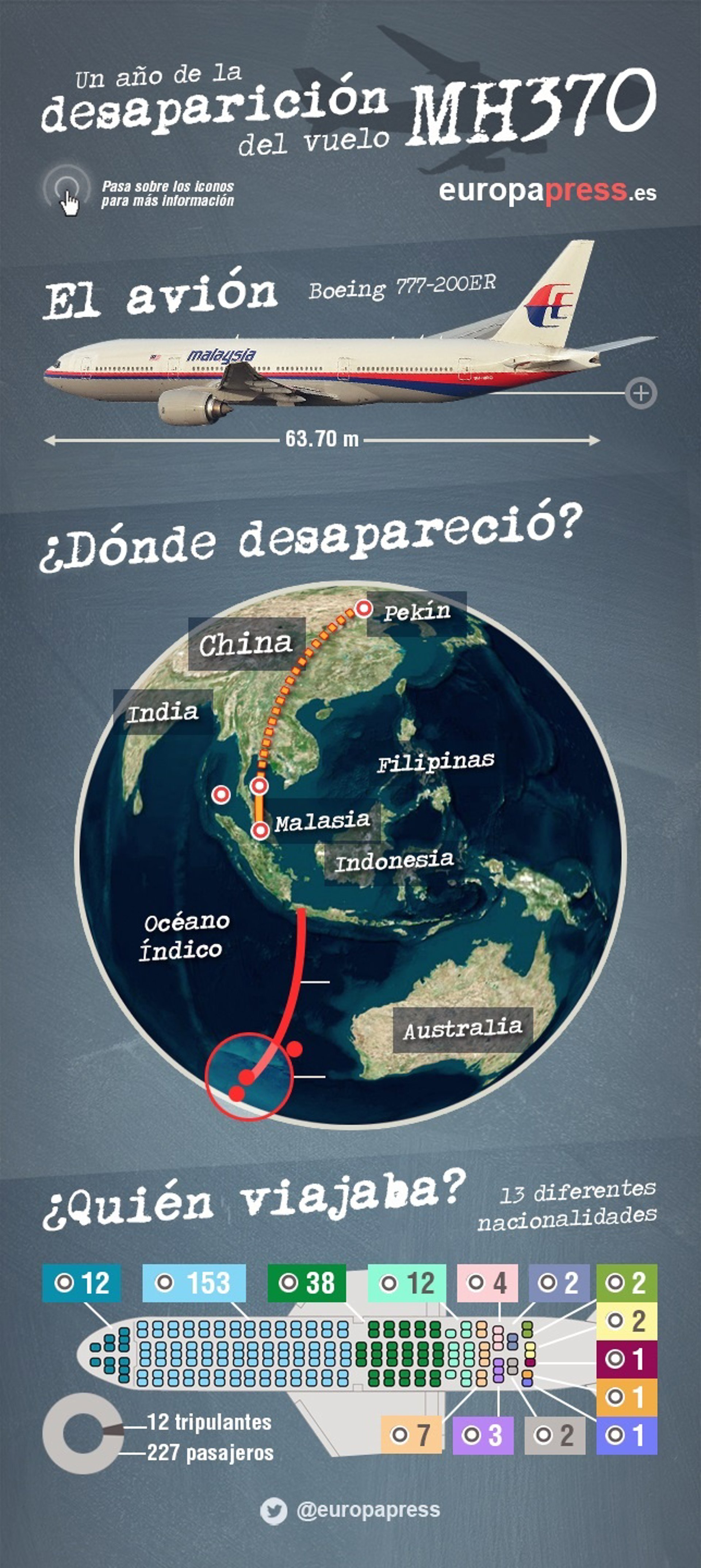 En la madrugada del 8 de marzo de 2014 el vuelo MH370 despegó de Kuala Lumpur con destino a Pekín. Cuarenta minutos más tarde, mientras volaba por el Golfo de Tailandia, el avión desapareció de los radares de los controladores de tráfico aéreos civiles sin que haya vuelto a haber rastro de él hasta la actualidad y convirtiéndose en uno de los mayores misterios de la aviación.