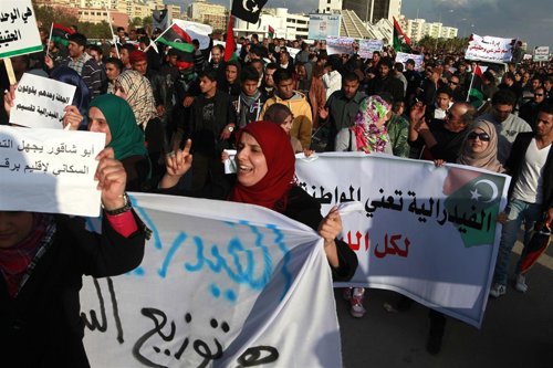 Testigos presenciales han declarado a la cadena británica BBC que los manifestantes nacionalistas fueron atacados por hombres armados con rifles y cuchillos. Esta protesta fue precedida por un discurso pronunciado por el presidente del consejo regional de Cirenaica, Ahmed Zubair al Senussi, en la plaza de la Libertad de Benghazi.