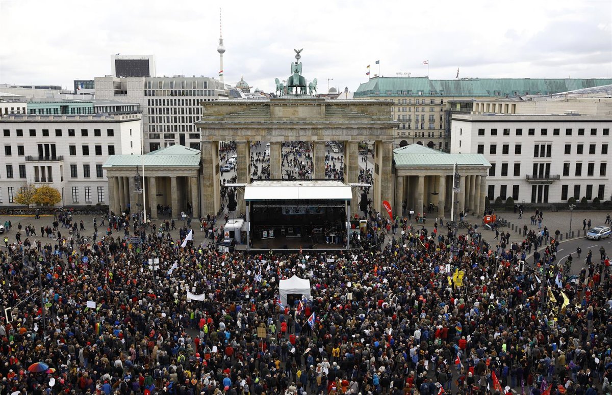 Bajo el lema "contra el odio y el racismo en el Bundestag (Parlamento)", miles de personas se han manifestado este domingo en Berlín frente a la emblemática Puerta de Brandenburgo para protestar por la inminente entrada del partido ultraderechista Alternativa para Alemania (AfD) en la Cámara baja.