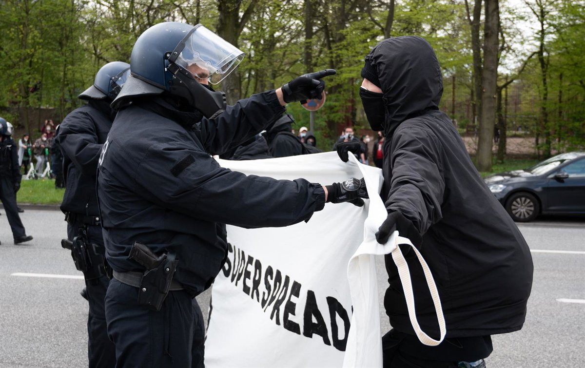En Hamburgo, la Policía ha utilizado cañones de agua para disolver una concentración frente al centro cultural de izquierdas Rote Flora, donde cientos de personas se habían reunido por la tarde, sin respetar las normas de distanciamiento social.