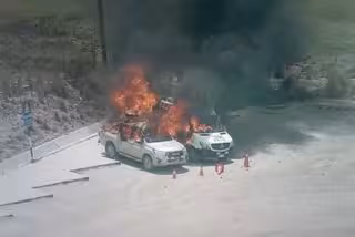 Coches ardiendo en la mina de Antapaccay, en Cuzco - ANDINA