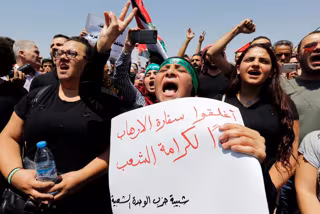 Las personas que se han vuelto a concentrar este viernes frente a la Embajada de Israel en Jordania para protestar por la muerte de dos jordanos a manos de un guardia israelí de la sede diplomática, han reclamado al Gobierno de su país que cancele el acuerdo de paz.