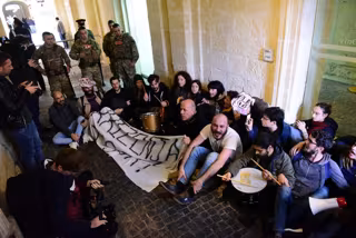 A continuación, se han sentado y han bloqueado la entrada, reclamando la renuncia de Muscat, quien no se encontraba en el edificio en esos momentos.