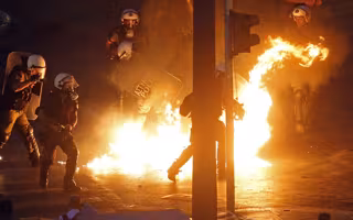 Manifestantes antisistema han lanzado decenas de cócteles molotov contra la Policía delante el Parlamento en Atenas este miércoles antes de la votación sobre el acuerdo para un tercer rescate de Grecia, en uno de los peores altercados en más de dos años.