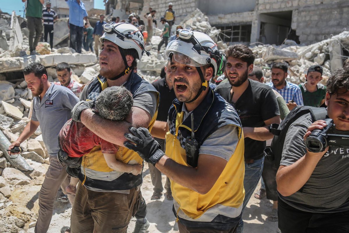 'Cascos blancos' rescatan a un niño herido en un bombardeo del régimen sirio en la provincia de Idlib, en el noroeste de Siria - Anas Alkharboutli/dpa