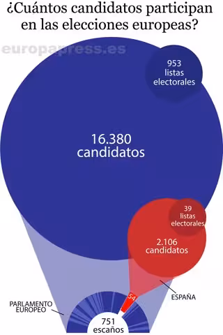 España, que elegirá a 54 eurodiputados, ha registrado 2.106 candidatos a europarlamentarios en el marco de 39 listas electorales, cuatro más que las que se sometieron al veredicto de las urnas en los comicios de 2009. La Eurocámara es el único parlamento multinacional que se elige mediante sufragio universal y es la única institución comunitaria cuyos miembros son designados por las urnas directamente.