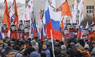 Muchos de los asistentes llevan banderas, eslóganes como "los héroes nunca mueren" y retratos del fallecido ex viceprimer ministro bajo el Gobierno de Boris Yeltsin, cuyo asesinato ha sido condenado por la comunidad internacional, que ha exigido al Kremlin una investigación limpia y transparente.