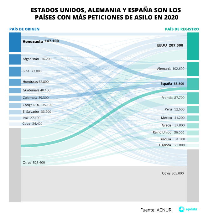 ACNUR incluye también en su análisis, presentado este viernes, a 4,1 millones de solicitantes de asilo, un nivel similar al de 2019.