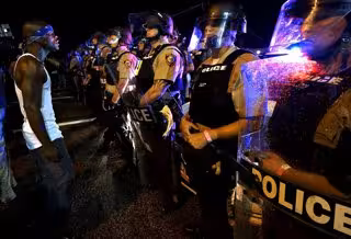 Por la noche, en torno a las 22.00 horas (hora local) cientos de manifestantes hicieron caso omiso a las instrucciones de no salir a la calle y se congregaron en la avenida West Florissant, provocando un leve enfrentamiento con las fuerzas del orden, que llevaron a cabo varios arrestos y llegaron a utilizar un spray de pimienta contra la multitud para aplacar las protestas.