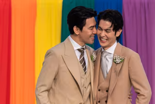 Una pareja de hombres posan tras contraer matrimonio en Tailandia - Europa Press/Contacto/Peerapon Boonyakiat