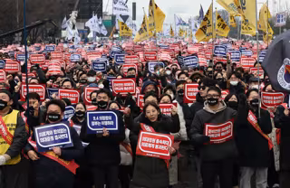 Los médicos, convocados por la Asociación Médica Coreana (AMC), han tomado las calles con pancartas con lemas como "En contra del aumento de la cuota de las facultades de medicina sin un acuerdo con el sector" o "Un aumento no preparado de la cuota de las facultades de medicina pone en peligro la formación médica", según recogen medios surcoreanos.