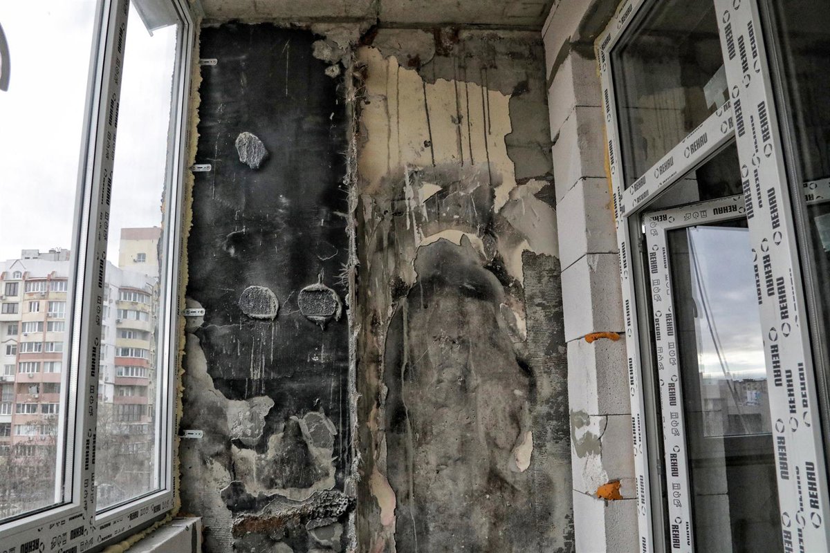 Obras en un edificio dañado por los ataques rusos en Odesa - NINA LIASHONOK / ZUMA PRESS / CONTACTOPHOTO