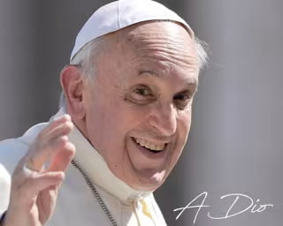 Las palabras "A Dios" aparecen manuscritas en blanco junto a la imagen de un Papa afable, sonriente y con la mano derecha tendida en la fotografía publicada por Meloni en su cuenta en X.