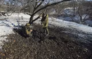 El hombre, de unos 58 años, y su mujer regresaban a casa de cobrar sus pensiones cuando impactaron los proyectiles, haciendo saltar esquirlas que le han causado la muerte. Su mujer ha resultado herida y ha sido trasladada al hospital, mientras que el cuerpo de su marido ha quedado en la nieve.