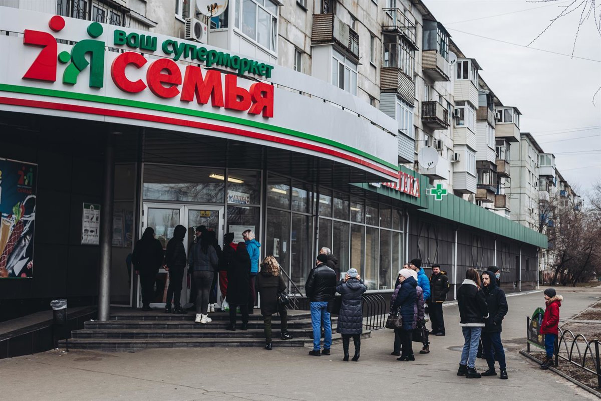 Colas en los supermercados de Severodonetsk para comprar productos en Severodonetsk, Oblast de Lugansk (Ucrania) - Diego Herrera - Europa Press