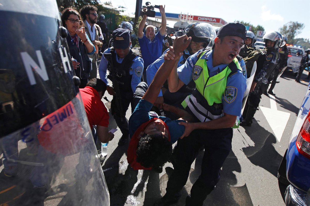 La Policía hondureña ha lanzado gases lacrimógenos a la multitud para tratar de dispersar la protesta.