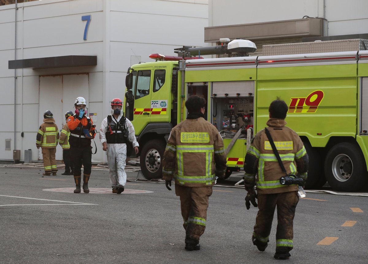 Imagen de archivo de varios bomberos durante las labores de extinción de un incendio en una fábrica de baterías de Corea del Sur. - Yao Qilin / Xinhua News / ContactoPhoto