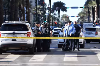 January 1, 2025, New Orleans, Louisiana, USA: Police officials investigate the scene after a driver rammed a pickup truck into a crowd at the French Quarter early on New Year's Day before being shot to death by police. - James Leyva / Zuma Press / ContactoPhoto