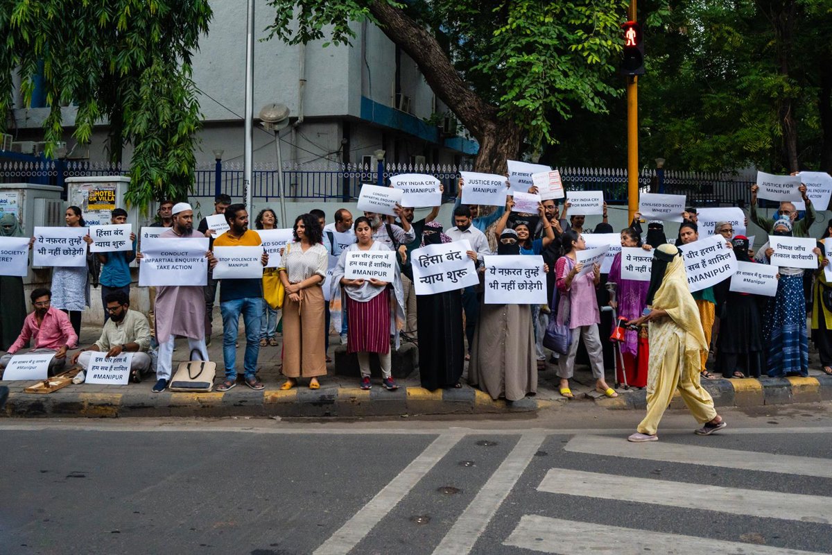Protesta contra la violencia en el estado de Manipur India. - Europa Press/Contacto/Saurabh Sirohiya