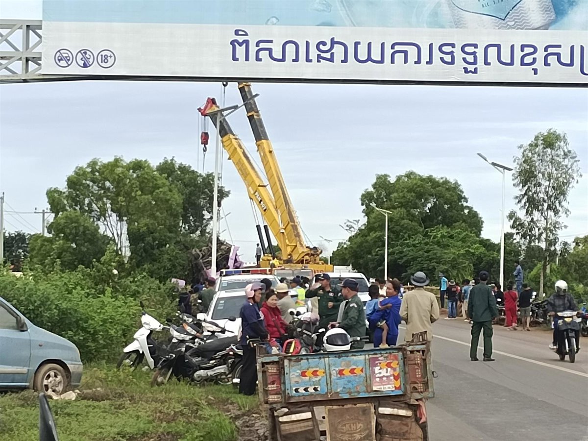 El accidente ha tenido lugar sobre las 04.00 horas (hora local), en la localidad de Chey Chumnas. Las primeras hipótesis apuntan a que la causa del suceso se debió a que el conductor se quedó dormido, lo que provocó que el vehículo chocara contra la barrera del puente y cayera al agua.