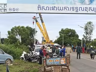 Grúas recuperan los restos del autobús accidentado en la provincia de Kampong Thom (Camboya) - Europa Press/Contacto/Kampong Thom Provincial Poli