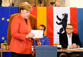 La canciller alemana, Angela Merkel, acaba de depositar su voto para las elecciones legislativas que se celebran este domingo en Alemania.