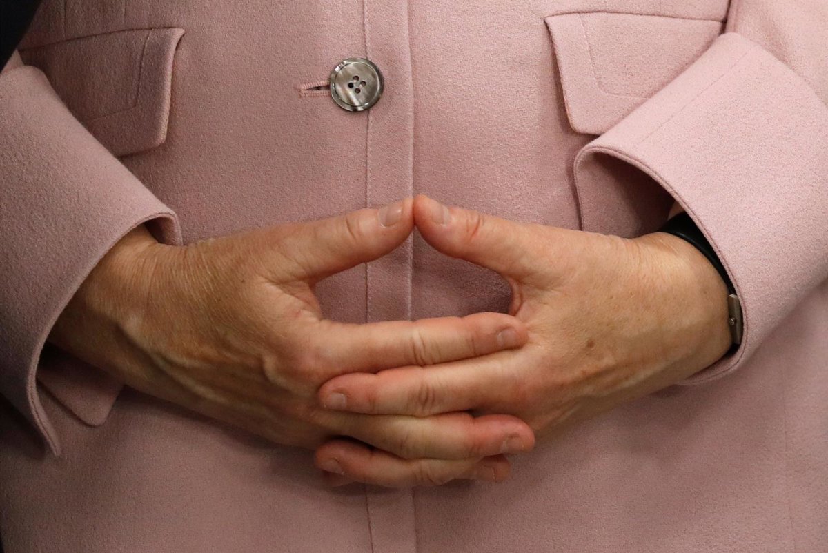 La canciller Angela Merkel entrelaza sus manos durante la cumbre de Osaka - REUTERS / JORGE SILVA