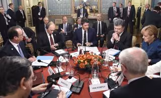 Merkel y Hollande, participan en una segunda reunión con Putin y Poroshenko, sin el resto de colegas europeos, durante la que quieren ahondar en el modo de poner en práctica el "compromiso" expresado por la mañana en cuanto a la necesidad de cumplir las condiciones del alto el fuego para estabilizar la situación.