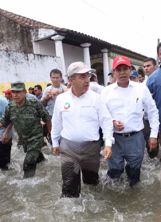 El gobernador de la entidad, Fidel Herrera, ha calificado de "catastrófica" la situación de Veracruz, donde han suspendido las actividades escolares en 50 municipios, y ha pedido a Calderón, quien este miércoles estuvo de visita en ese estado, declarar la emergencia para poder disponer de recursos para atender a los damnificados.