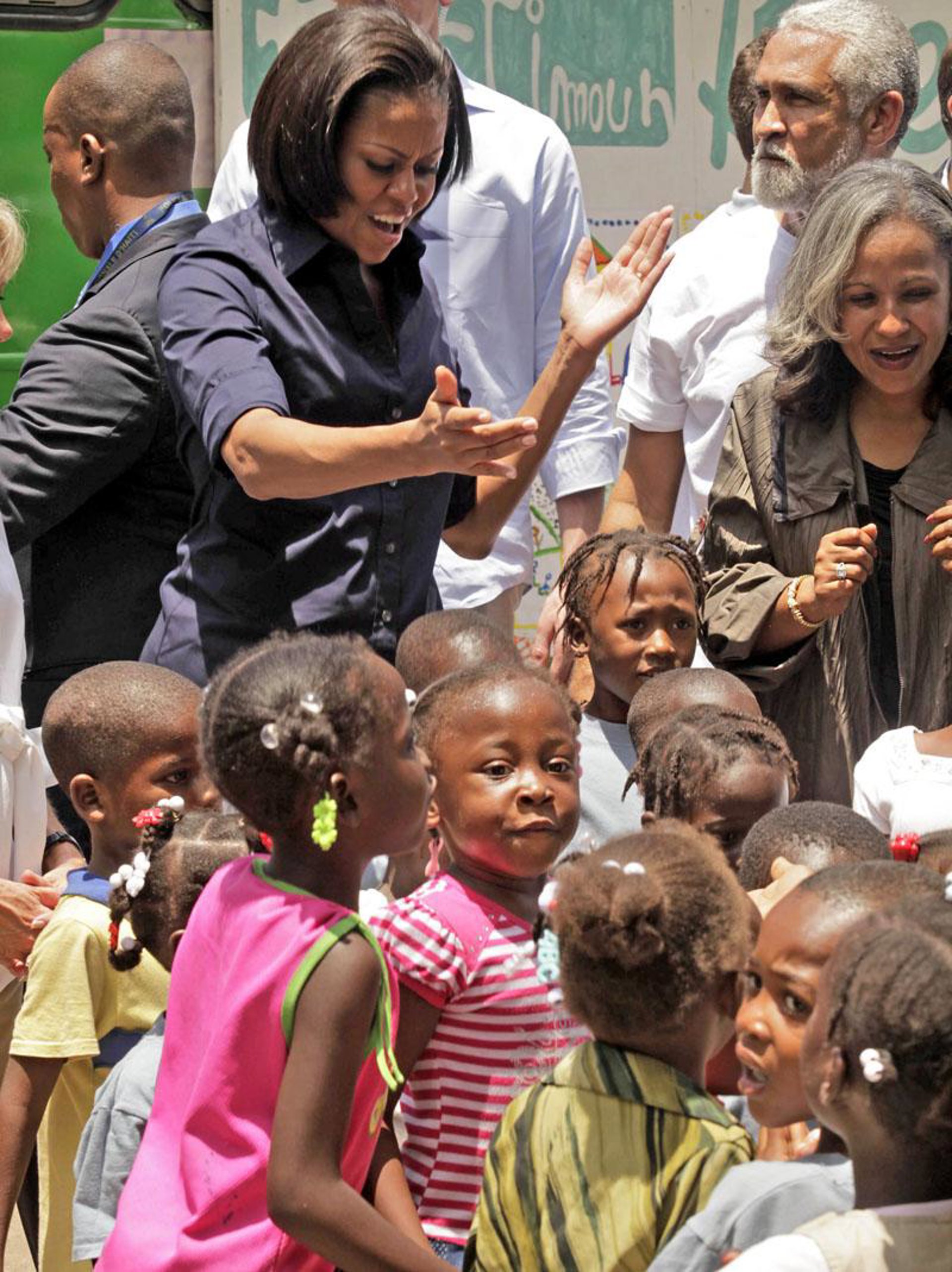 Michelle Obama visitó este martes Haití, haciendo una escala inesperada en su primer viaje internacional en solitario como primera dama a México, y llegó acompañada de Jill Biden, la mujer del vicepresidente Joe Biden.