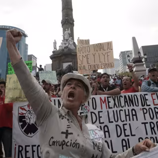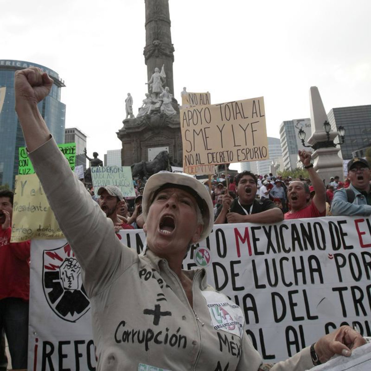 Miles de trabajadores del sector eléctrico se manifestaron este jueves en México Distrito Federal, indignados ante el sorpresivo cierre de la deficitaria empresa Luz y Fuerza del Centro (LFC), una medida del Gobierno para recortar gastos ante la crisis económica.