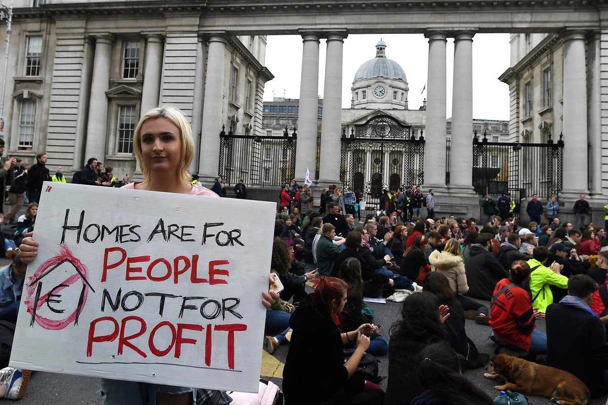 Miles de personas han marchado este miércoles hacia el Parlamento de Irlanda para reclamar medidas políticas que garanticen el acceso a la vivienda, en un mercado lastrado en estos últimos años por la subida del precio del alquiler y por la falta de inmuebles para cubrir la creciente demanda.