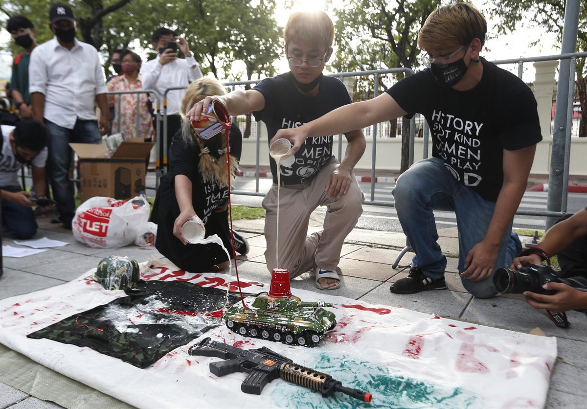 La protesta está teniendo lugar, precisamente, en la avenida que el rey, Maha Vajiralongkon, tendrá que transitar para llegar al Templo del Buda de Esmeralda, donde tiene previsto asistir a una ceremonia de graduación de un grupo de estudiantes.