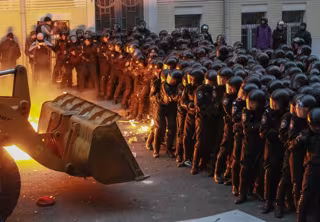 En la movilización del domingo frente al edificio presidencial, la Policía empleó gas lacrimógeno, granadas aturdidoras y porras para dispersar a los manifestantes. Los agentes se enfrentaron con varios grupos de manifestantes cuando intentaron derribar una escultura del líder soviético Vladimir Lenin.