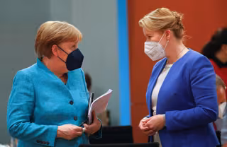 La ya ex ministra de Familia de Alemania Franziska Giffey conversa con la canciller, Angela Merkel. - Michele Tantussi/Reuters/Pool/dp / DPA