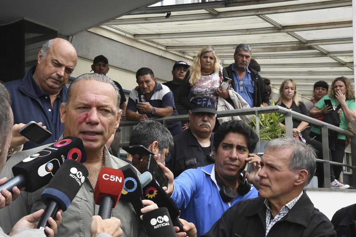 Debido a la violencia de los golpes, Berni llegó incluso a caer al suelo, momento en el que algunos de los agresores aprovecharon para patearlo. Con una mejilla ensangrentada, el ministro de Seguridad se dirigió a los manifestantes asegurando que las autoridades lograron detener al supuesto autor del asesinato del conductor de autobús.