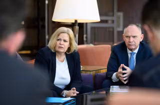 Los ministros del Interior de Alemania, Nancy Faeser (i), y Austria, Gerhard Karner (d), en la capital de Jordania, Amán, tras la cancelación de su viaje a Siria por motivos de seguridad - Bernd von Jutrczenka/dpa