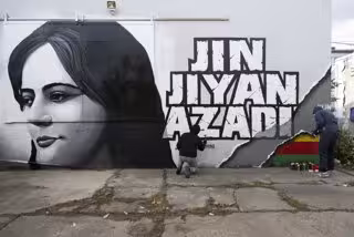 Archivo - Mural en Frankfurt, Alemania, en recuerdo a Mahsa Amini, muerta bajo custodia en Irán tras ser detenida por supuestamente llevar mal puesto el velo - Boris Roessler/dpa - Archivo