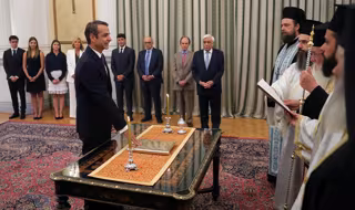 Mitsotakis ha llegado al mediodía al palacio presidencial acompañado por su familia para tomar posesión de su cargo ante el jefe del Estado y las autoridades religiosas. Tras la toma de posesión, el nuevo jefe del Gobierno ha acudido a la oficina del primer ministro, donde el primer ministro saliente, Alexis Tsipras, le ha cedido el testigo.