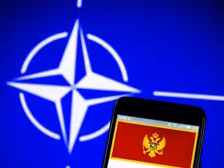 Archivo - Una bandera de Montenegro sobre un fondo de la OTAN - Europa Press/Contacto/Igor Golovniov - Archivo