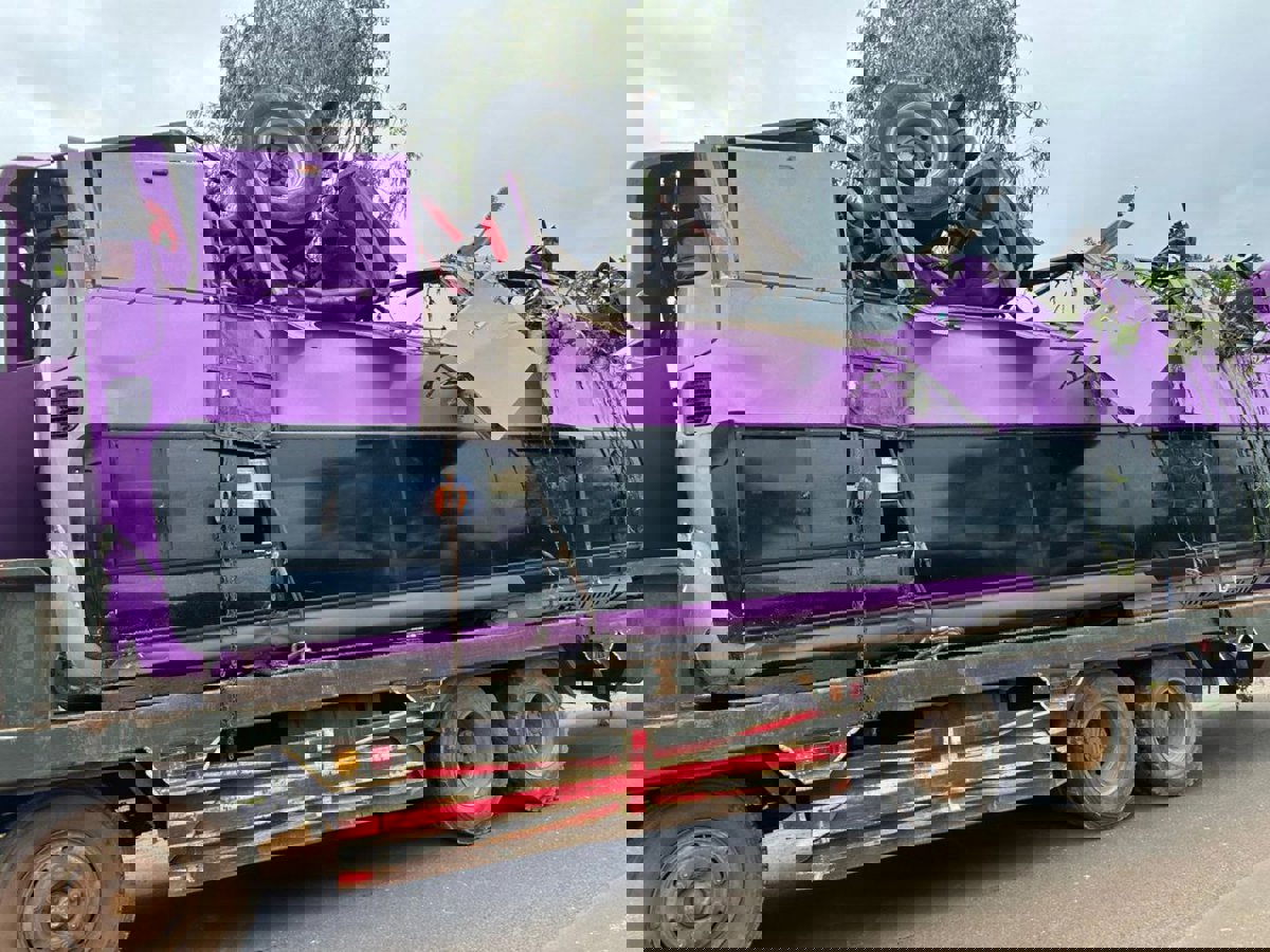 Un camión traslada un autobús siniestrado en la provincia de Kampong Thom, en Camboya. - Europa Press/Contacto/Kampong Thom Provincial Poli