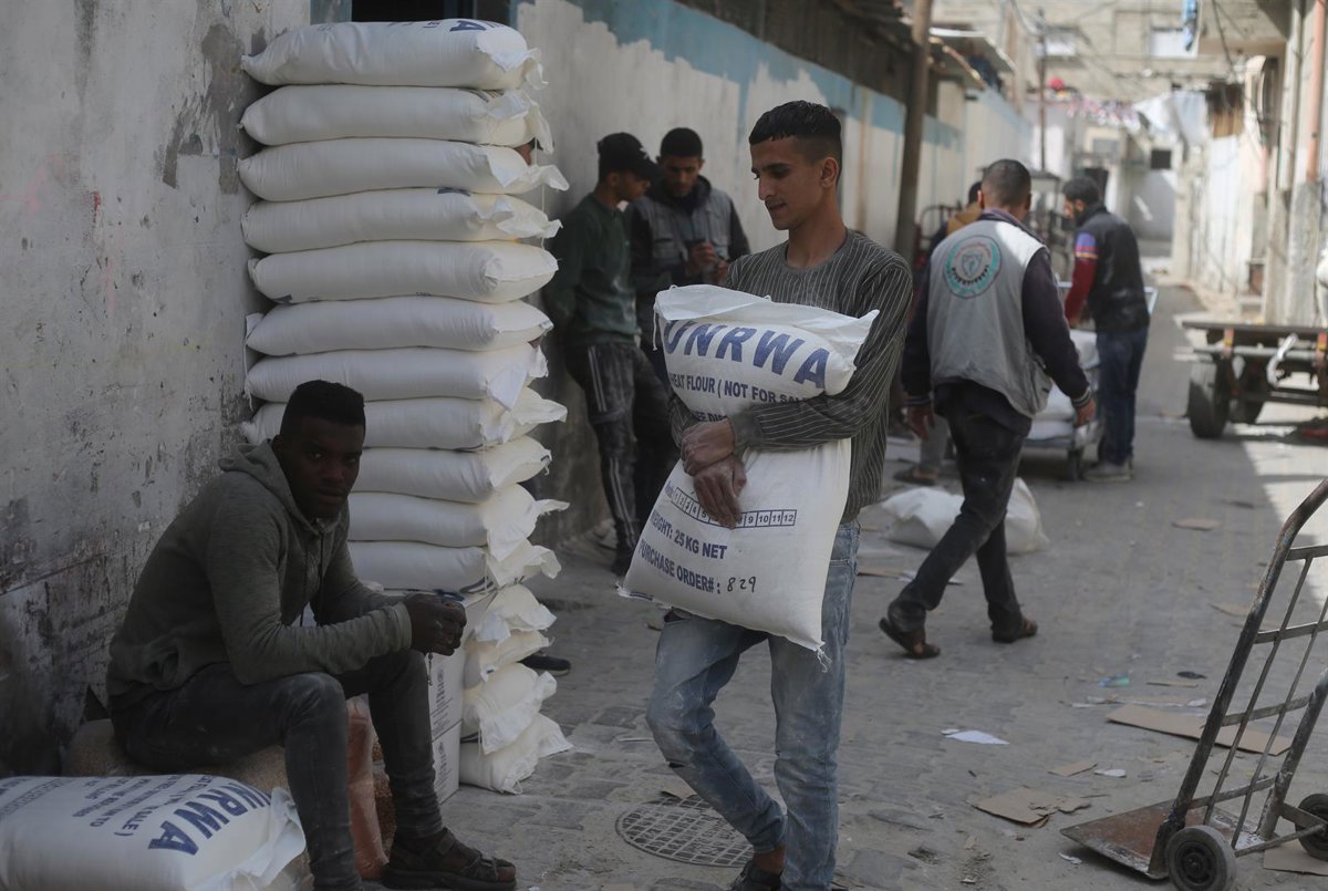 Archivo - Un trabajador palestino transporta un saco de harina de la Agencia de Naciones Unidas para los Refugiados de Palestina en Oriente Próximo (UNRWA) a un campamento de refugiados en la ciudad de Rafá, en el sur de la Franja de Gaza (archivo) - Europa Press/Contacto/Khaled Omar - Archivo